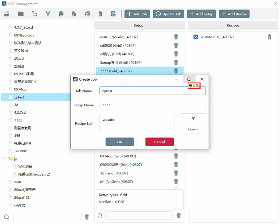 19.JOB Management页面,选中一个已有的JOB,然后点击Update Job按钮,跳出的窗口中最小化,最大化和关闭按钮的悬浮字都是中文,未翻译成英文。