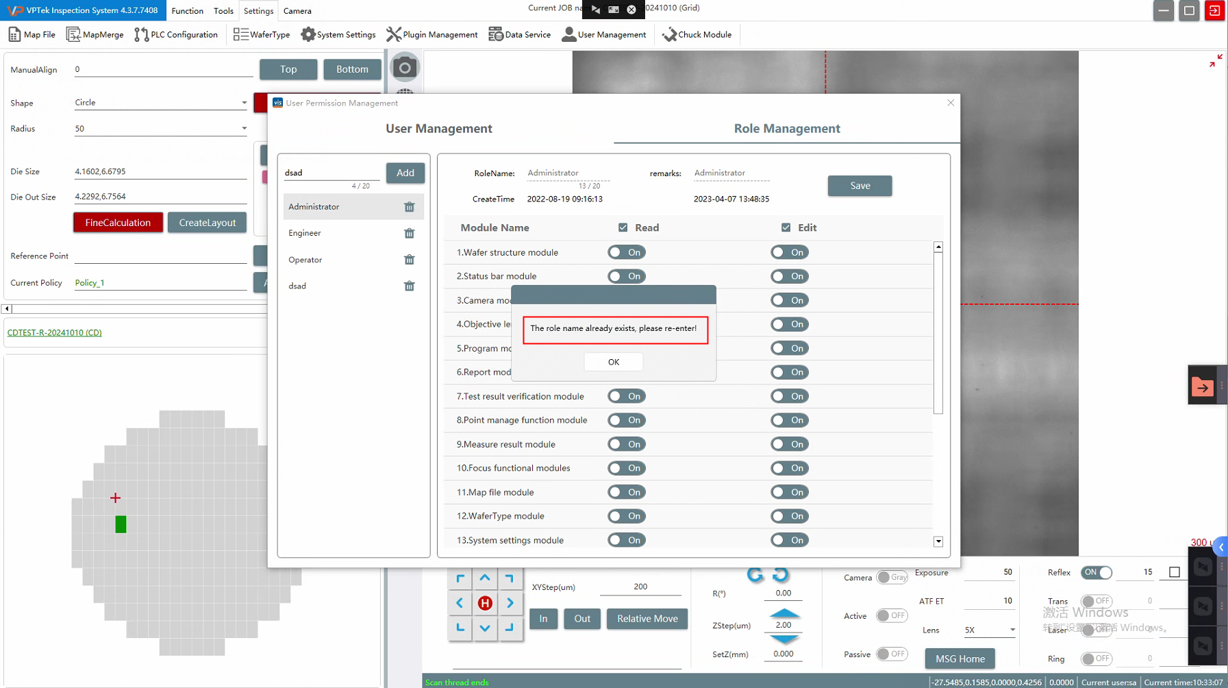 12.用户管理页面,角色权限设置里面线阵扫描和3D扫描未翻译成英文。