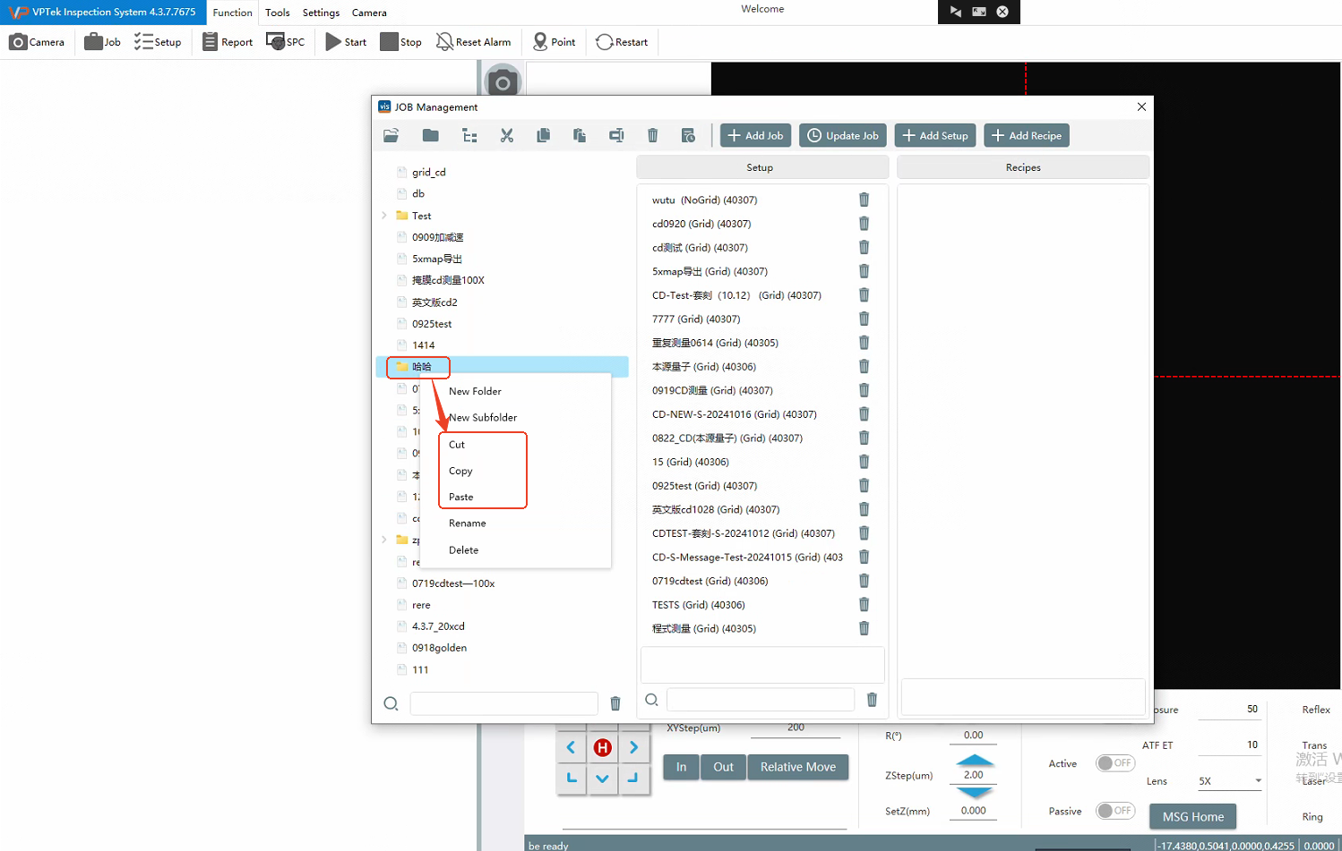 已在V4.3.7.7720验证OK,右击job列文件夹的菜单中剪切,复制和粘贴都置灰显示。