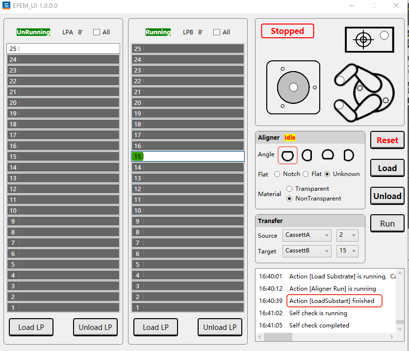 --> 槽位数字不对,选择的是第2个槽位,应该输出【Action [Load Substrate] is running,CassettB, 2 】