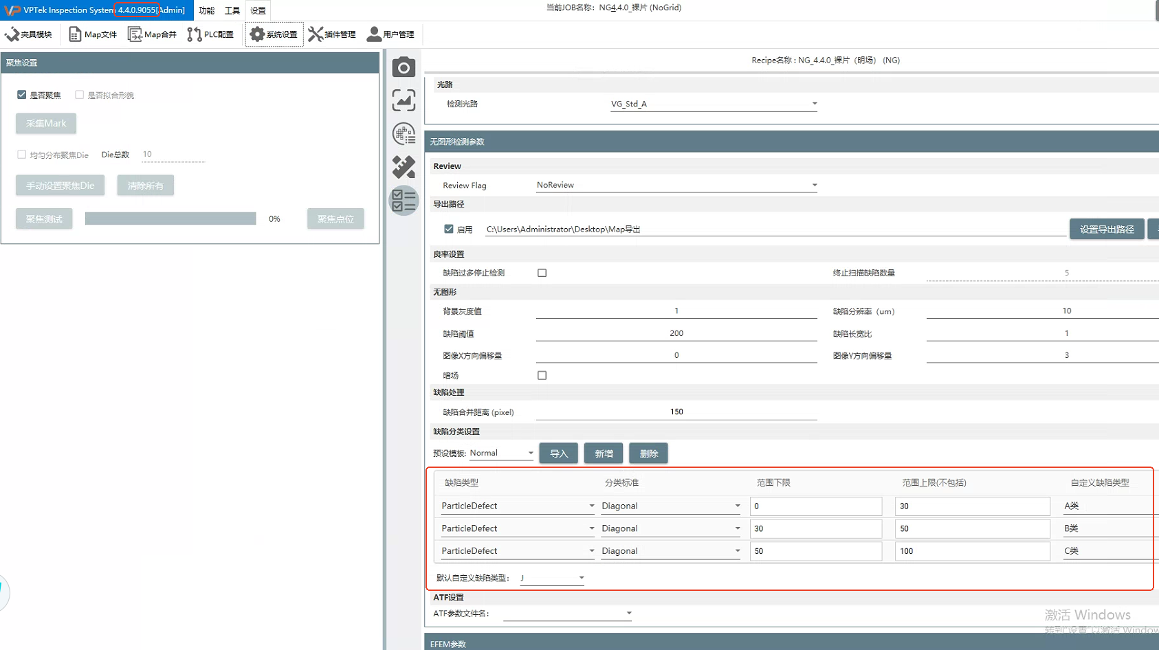 备注:如果不进入recipe设置页面,系统设置页面进行保存操作,recipe设置中的缺陷类型是不会自动变更的。