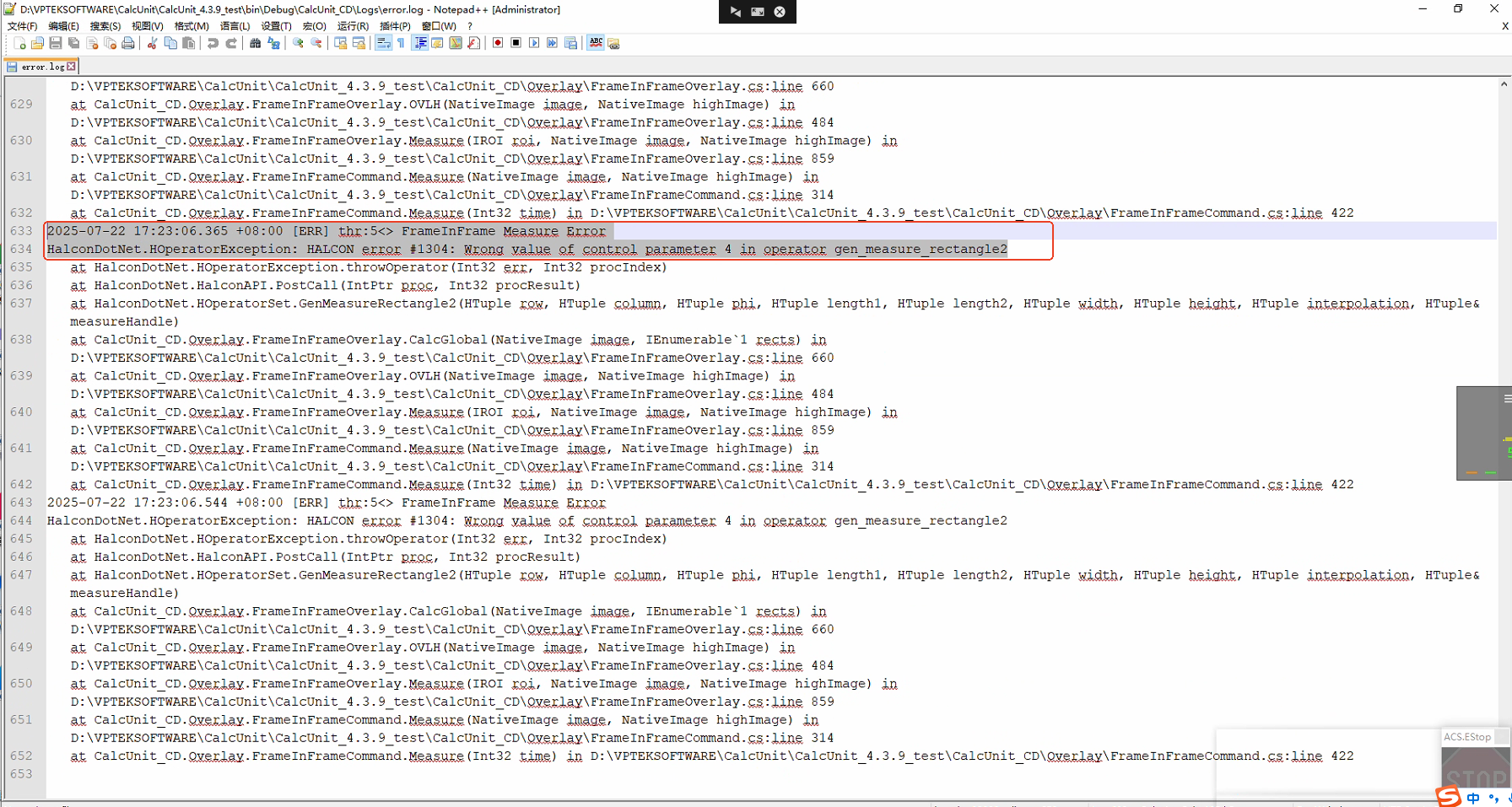 直接点击X按钮关闭ROIEditor页面,启动检测,测量失败,计算单元日志报错。
