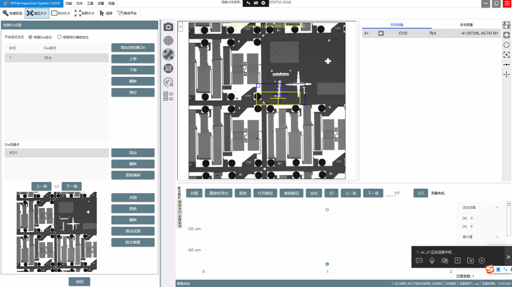 在ROI List中选中已关联的ROI,在键盘点击Delete按钮删除了此ROI,重新框选ROI不关联,直接手动ctrl+s保存或者点击X按钮自动保存ROIEditor页面后,启动检测后卡住不继续测量