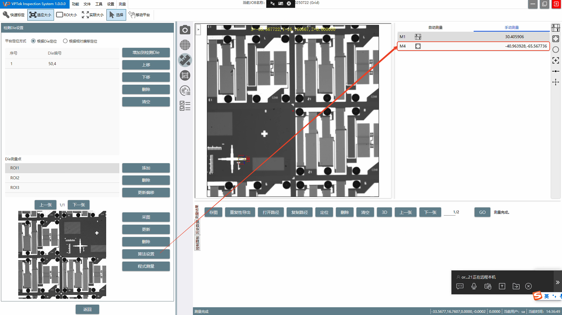 已关闭点击程式测量按钮进行测量后,测量结果在手动测量页面第一行时,其序号却显示为M2