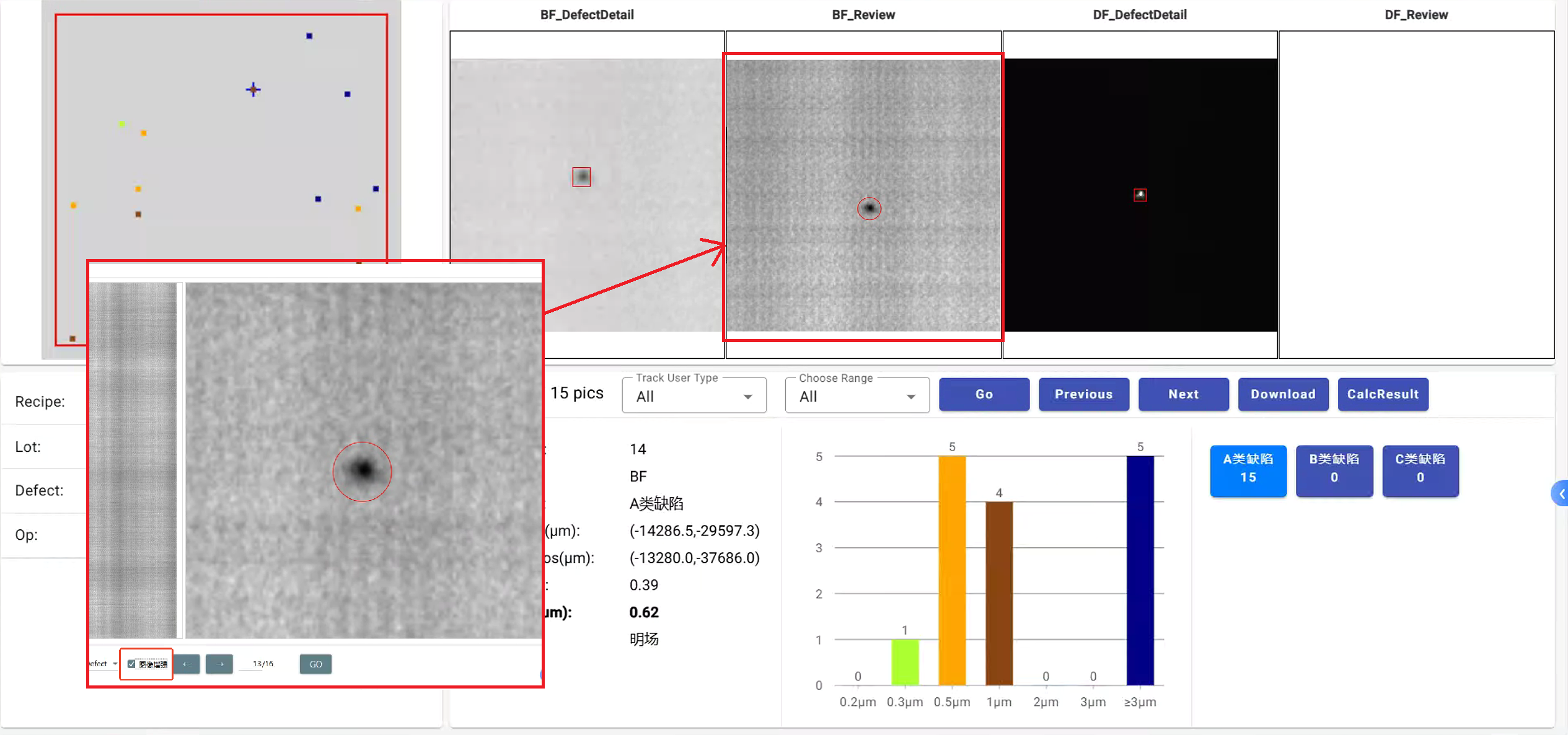 打开面阵Review图片分辨率不符合使用要求,能否选择使用线阵缺陷图的图像增强之后的图片