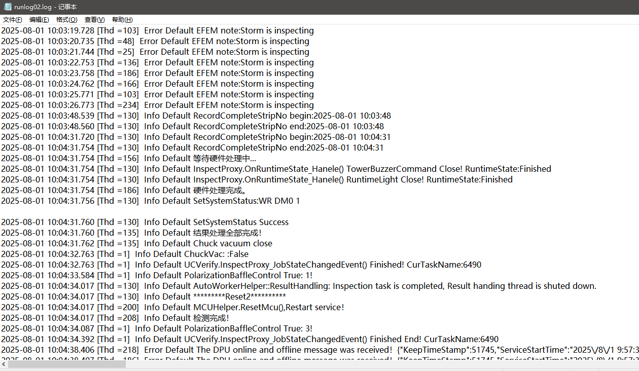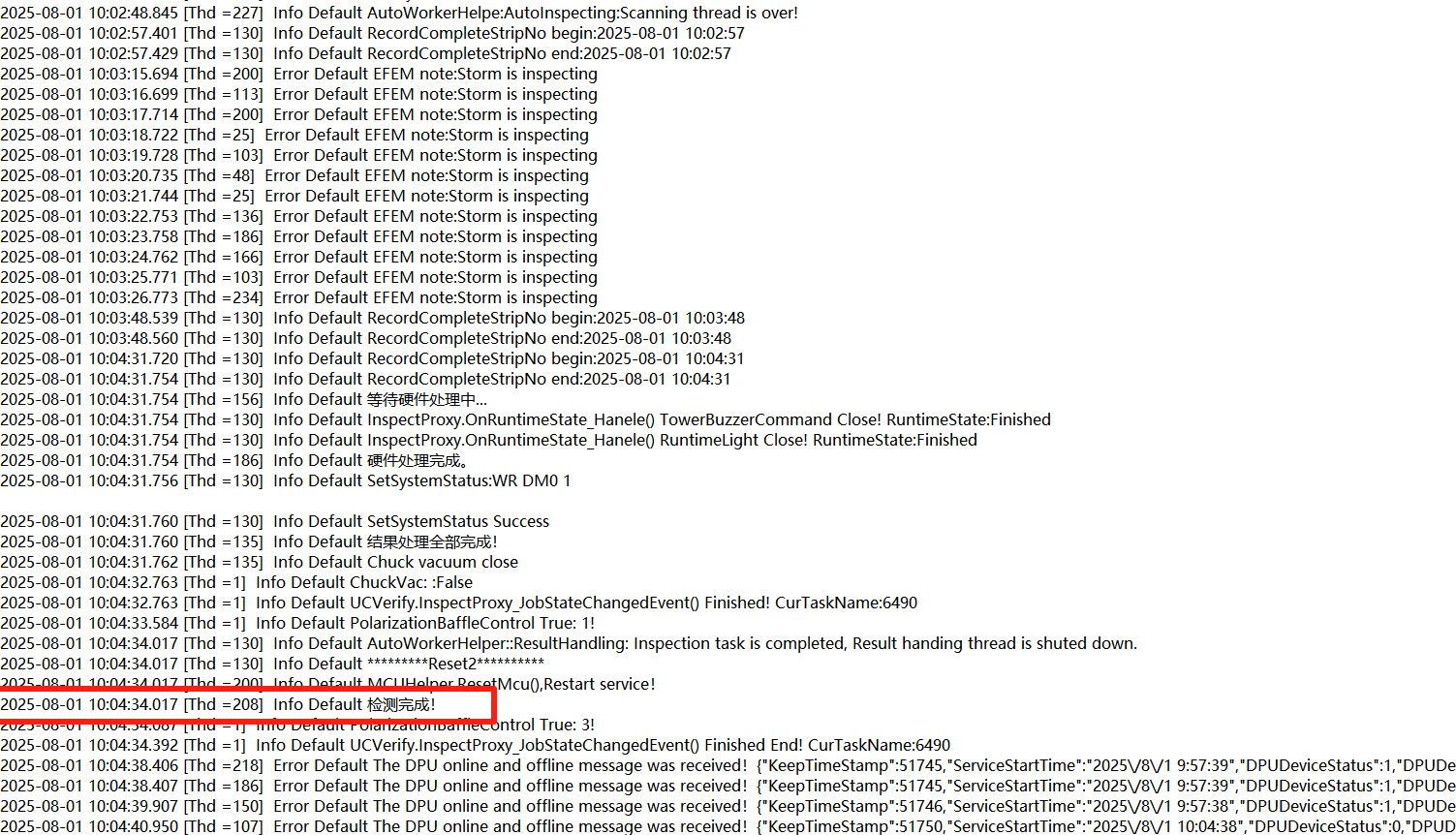 10:03 EFEM请求Storm下片,Storm仍在检测处理中,无法下片。