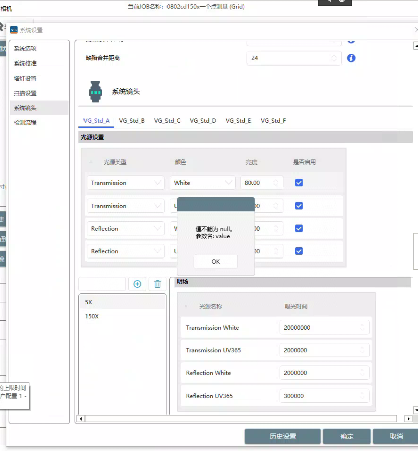 修改 曝光时间后,点【历史设置】恢复记录,有错误弹窗