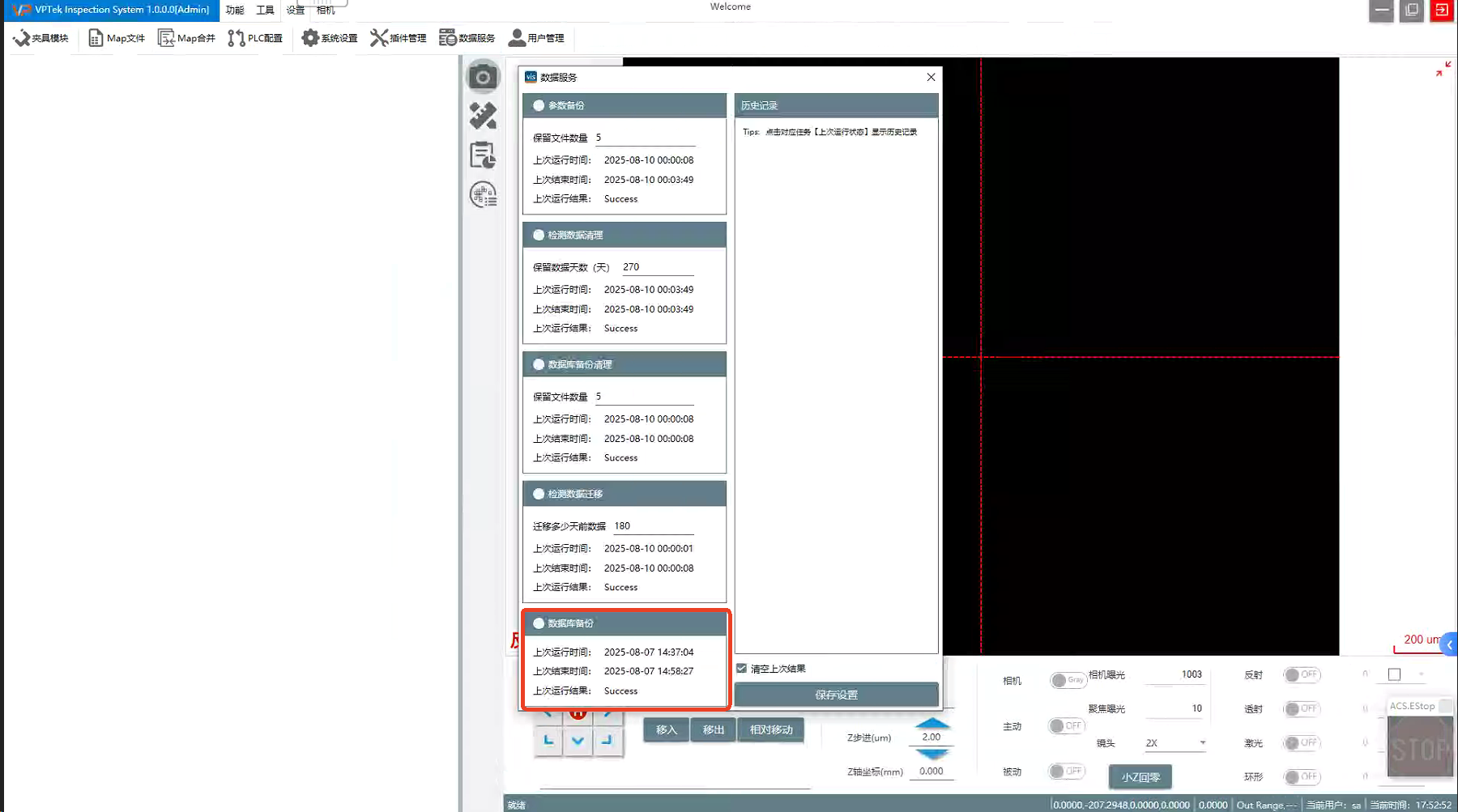 插件初始化,数据库备份服务提示不正确(数据库7天备份一次 测试版本:VIS_4.4.1_Test 10612)