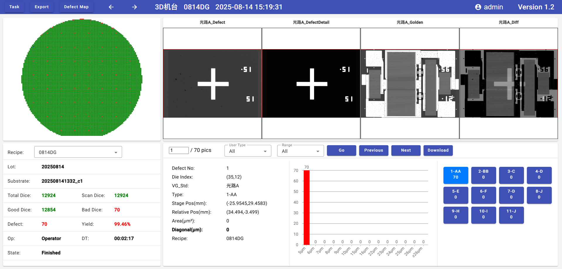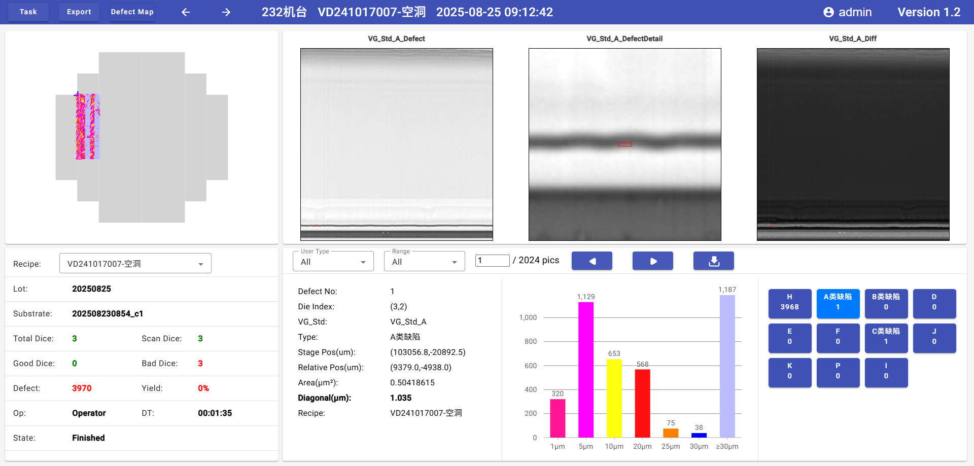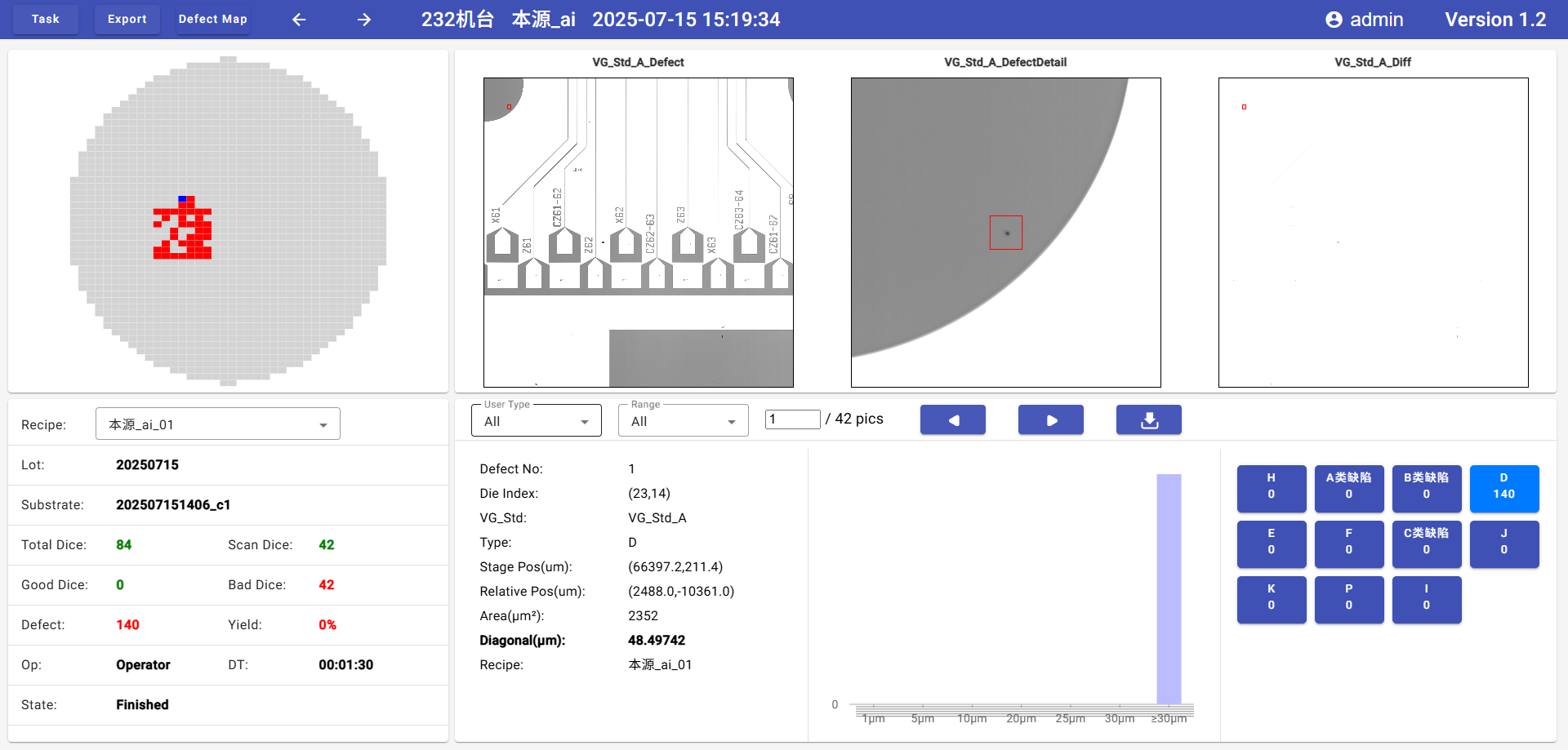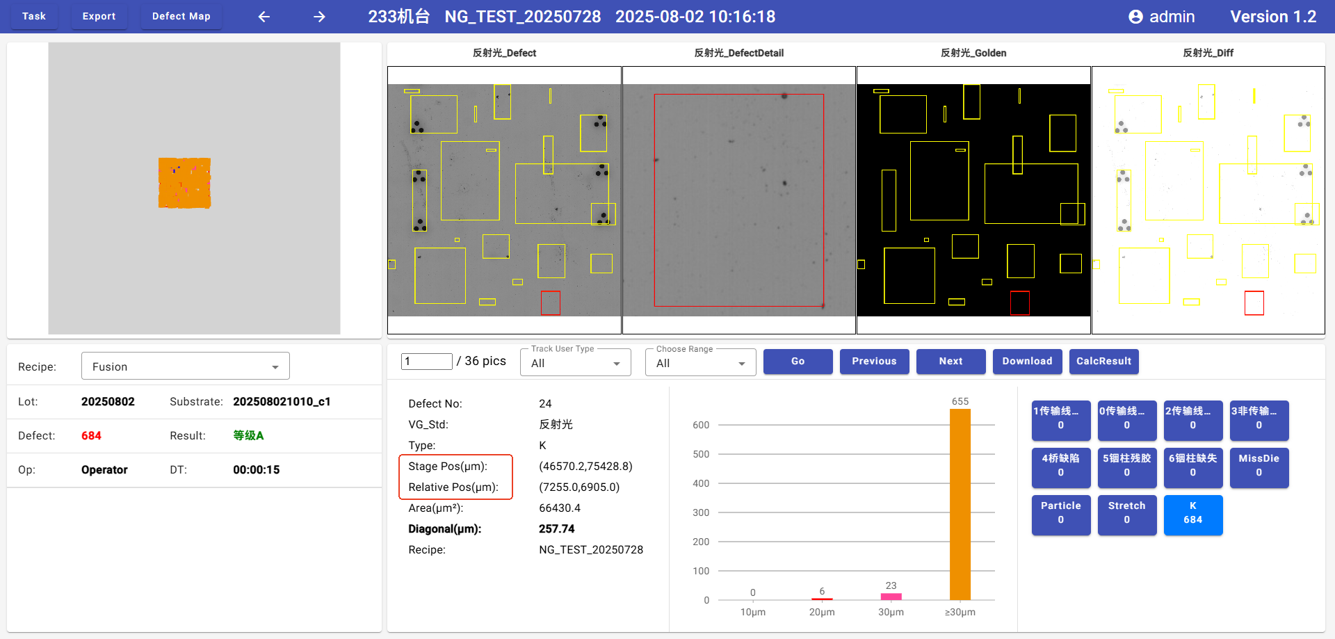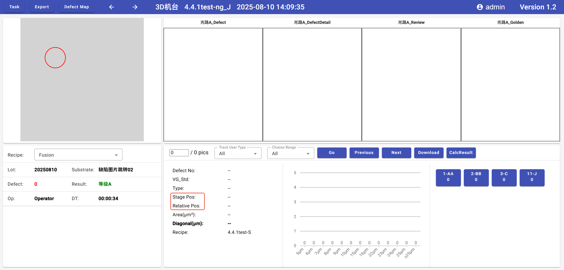 但是缺陷个数不为0时,任务详情页面显示Stage Pos(um)和Relative Pos(um),二者不一致。