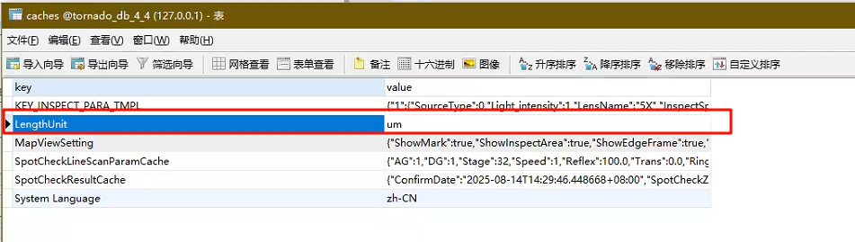 cache表内需增加一个字段LengthUnit。如果数据库内没有这个字段,则默认使用mm为统一单位,与SPC侧逻辑保持一致