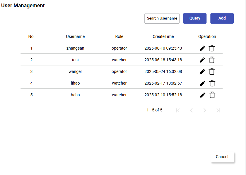 - 按钮名称:取消操作按钮都叫做Cancel,如Exit需要修改成Cancel;确认操作按钮都叫做Confirm,如任务列表页面的Select按钮,新增新用户页面的Add按钮。