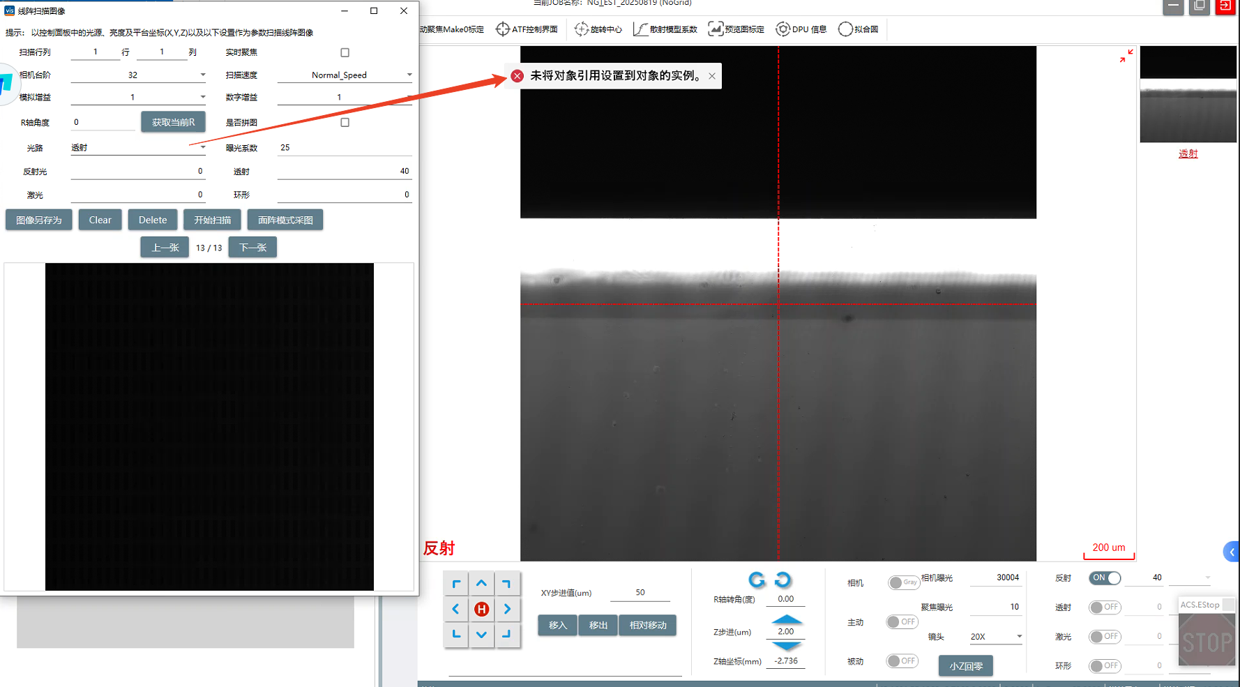 用透射光路的线阵相机面阵模式采图报错:未将对象引用设置到对象的实例