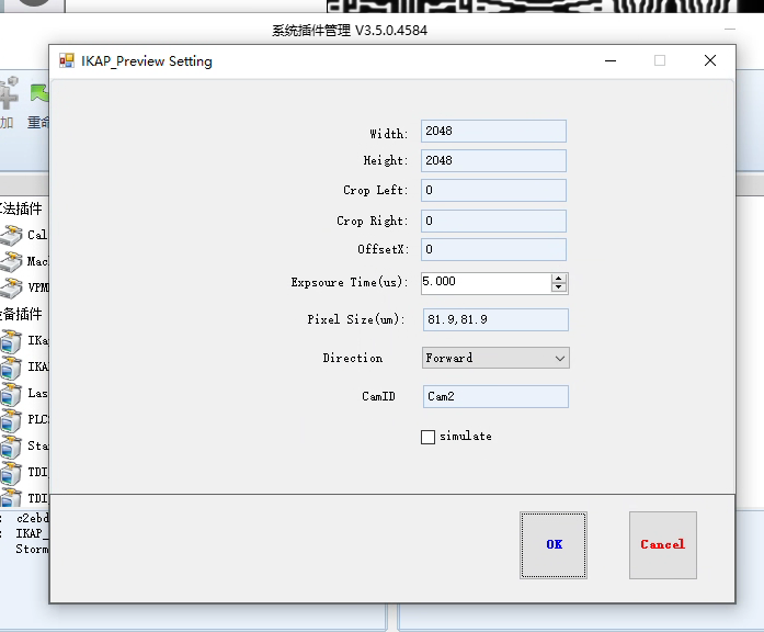 预览相机像素STOMR软件和艾科相机软件都设置为2048*2048报错,都改成1824*1824就没问题。