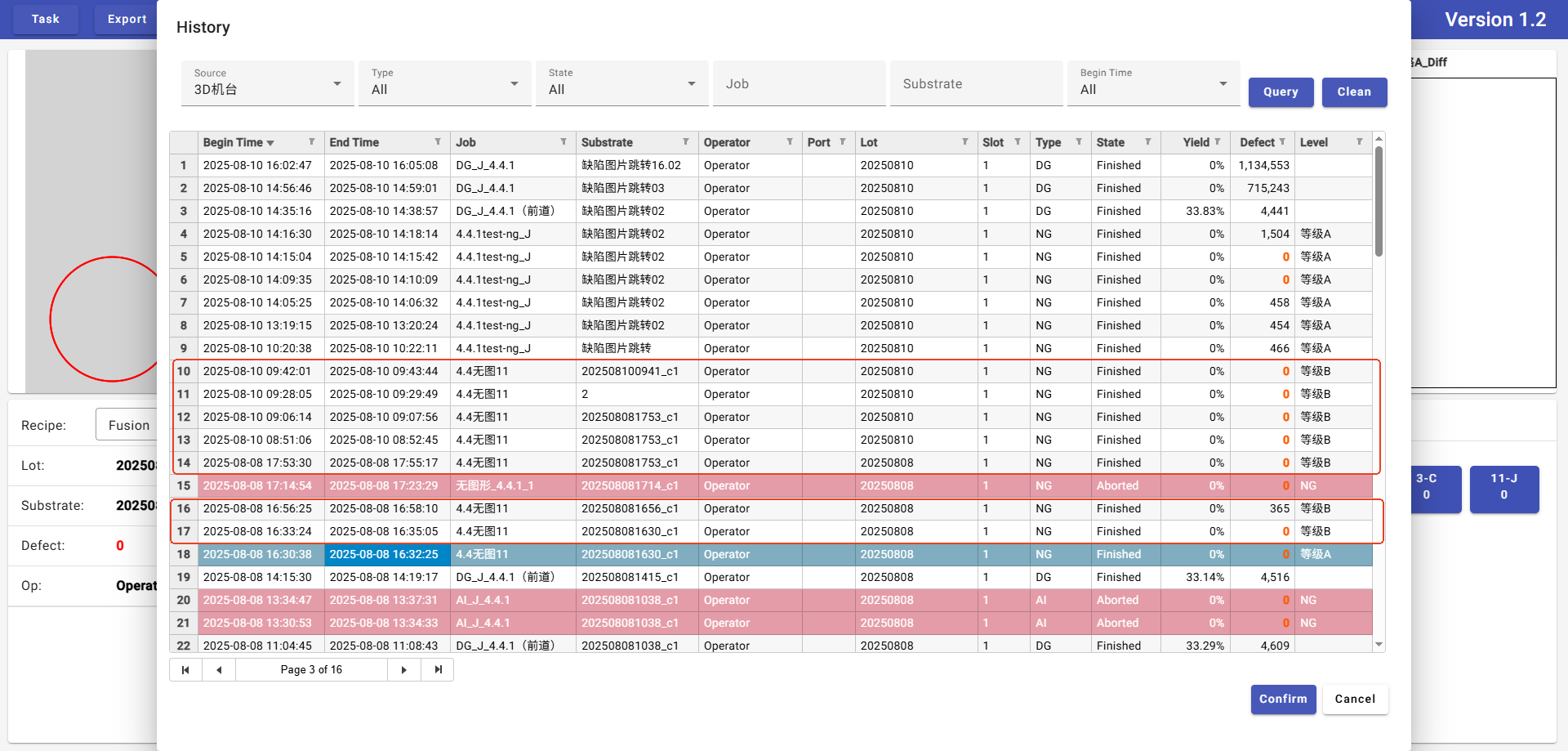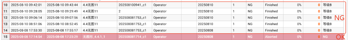NG类型的数据如果是由于缺少字段导致的,那么同一机台某个时间点NG类型的缺陷个数正确显示后,此时间点之后的所有任务都应该正确显示才对,