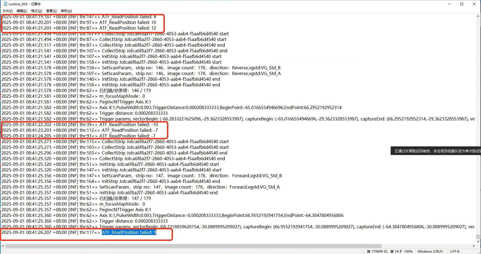 检测过程中runtime日志里有ATF_ReadPosition failed:输出( VIS_4.4.0.11043)