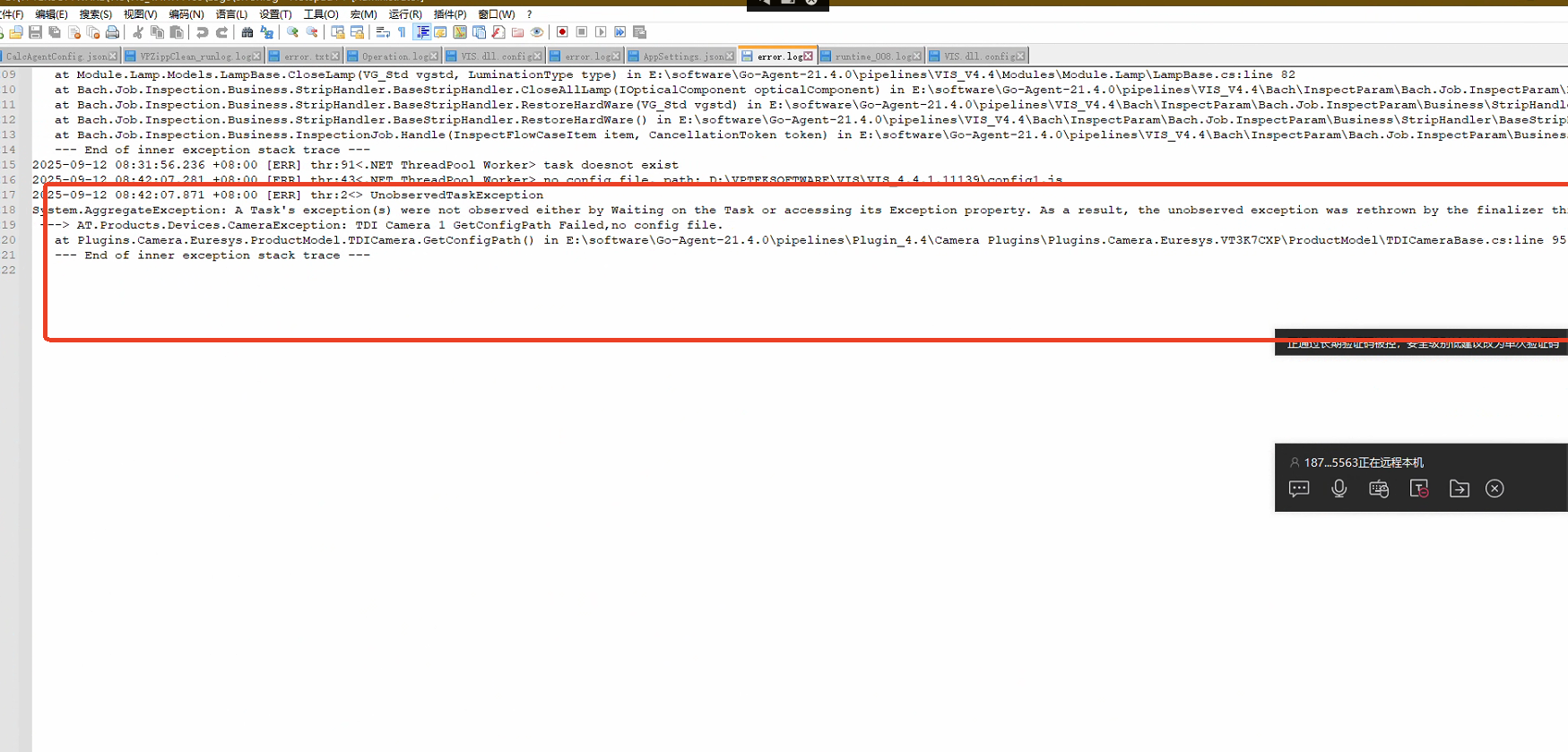 iris机台:vis4.4.1.11139有一个线阵相机初始化失败,但是vis界面没有提示,error有错误日志