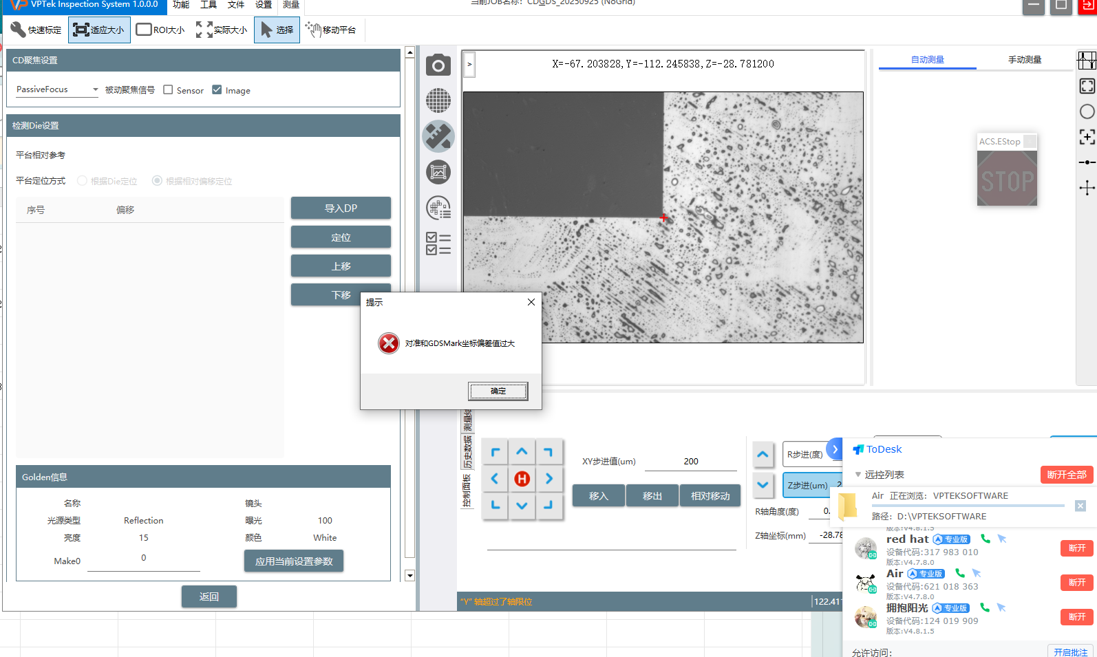 CD_GDS检测模式,对准后导入DP文件报错:对准和GDSMark坐标偏差过大