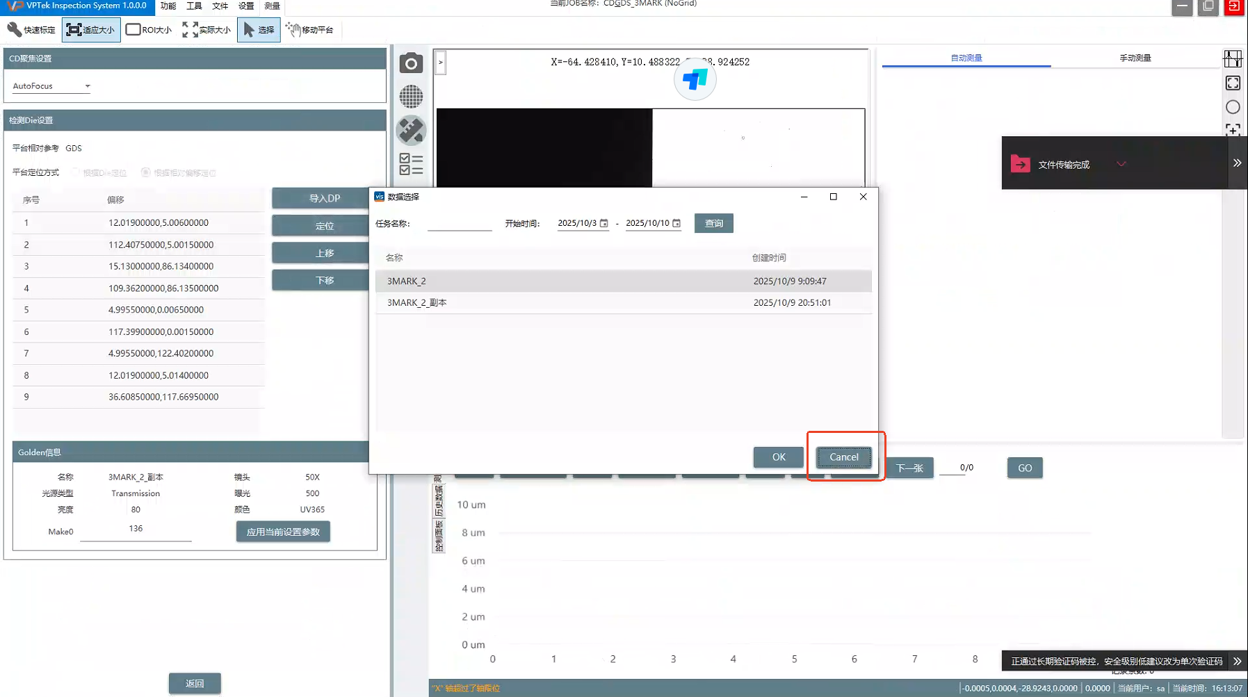 CD_GDS测量 - 选择DP文件弹窗,点击【Cancle】按钮无效