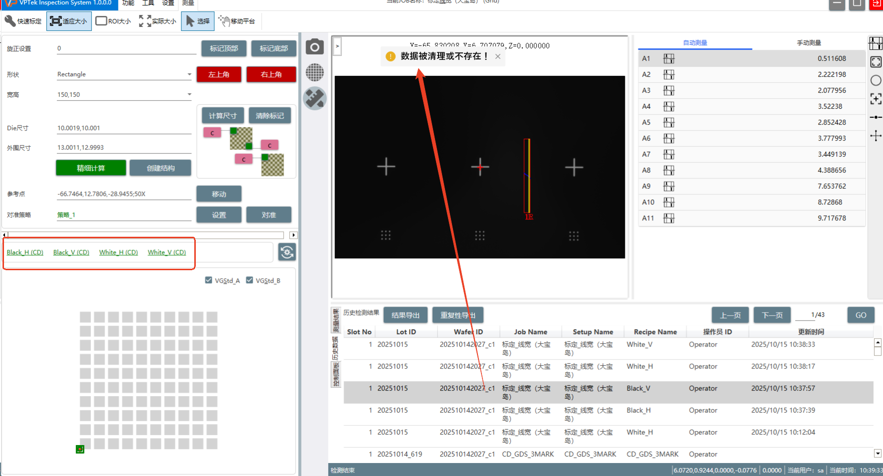 CD测量 - Job中包含多个Recipe,测量完成后查看历史数据,只有第一个Recipe可查看历史数据,其余Recipe查看历史数据时报错:数据被清理或不存在