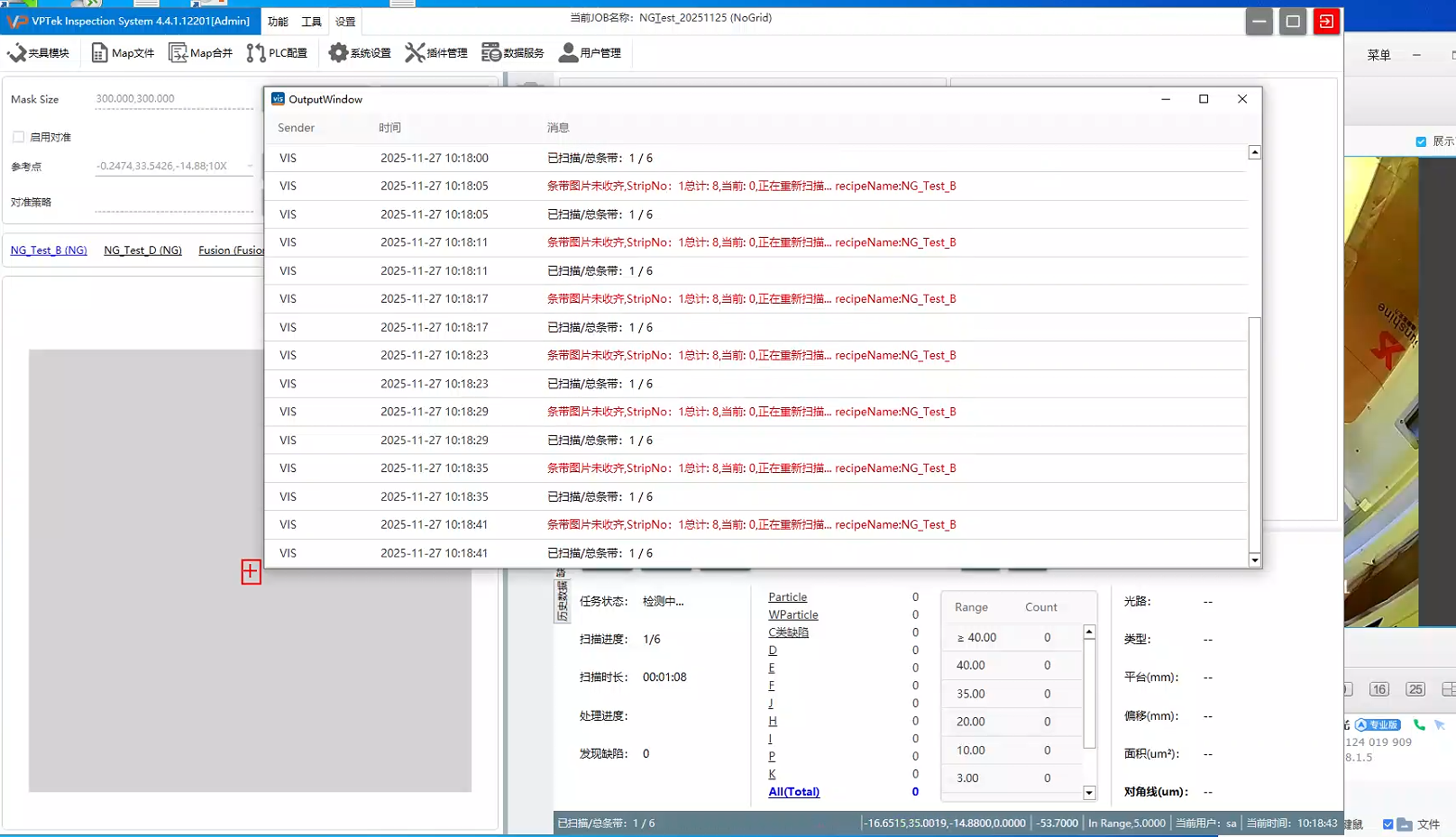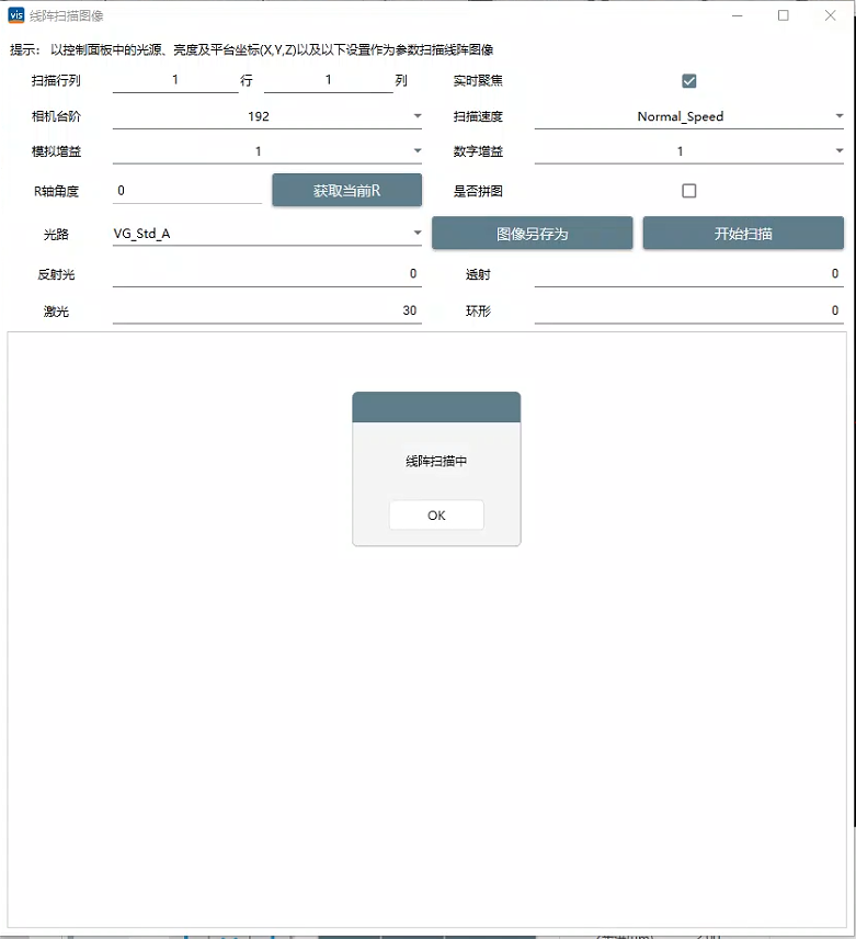 通过线扫工具扫描图像一直停不下来,导致启动检测报错(VIS_4.4.1.12201)
